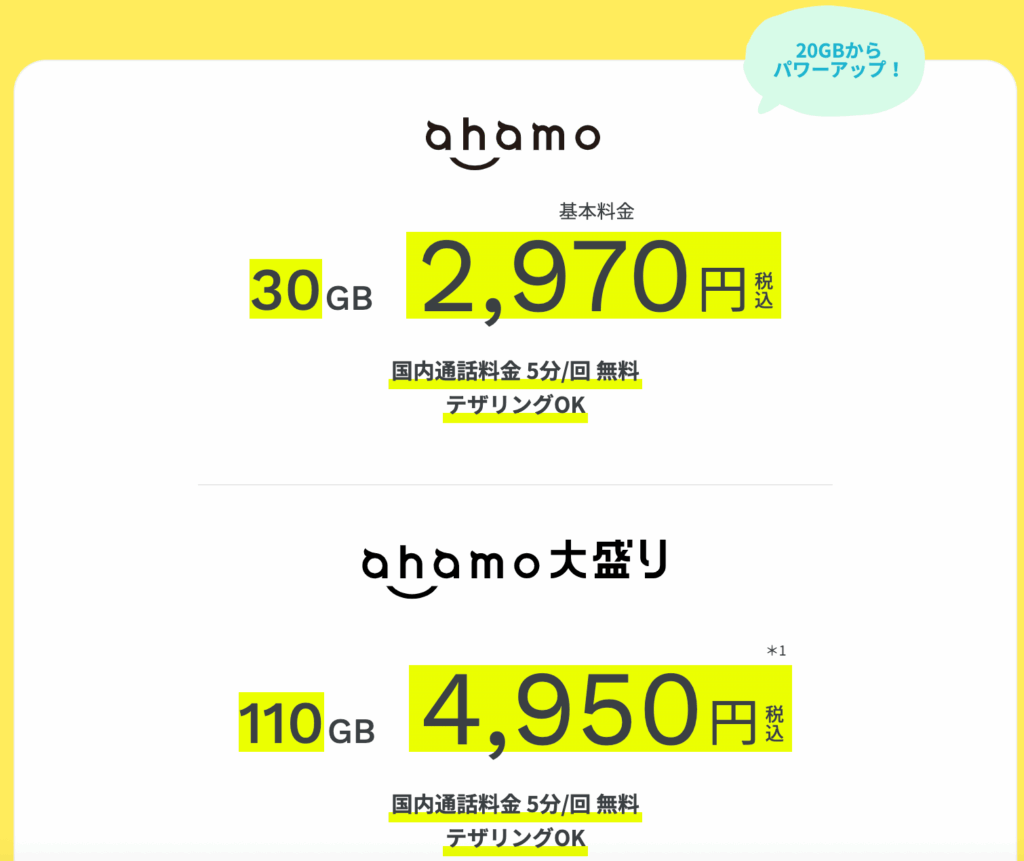ahamoはドコモが提供する料金プランで、月額2,970円(税込)で以下の内容が利用できます。