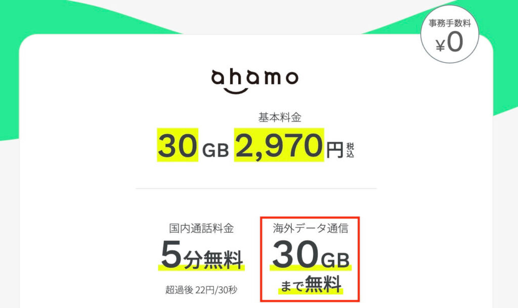 特に、15日以内の旅行であれば月額2,970円で30GBも使えるahamoには、以下の三拍子が揃っています。