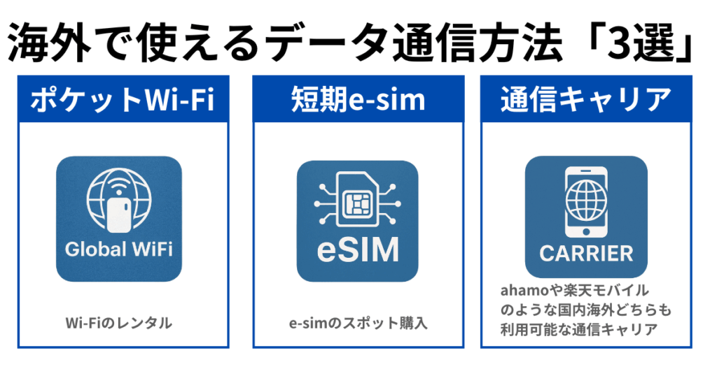 海外でスマホを使う方法は、大きく分けて以下の3つがあります!