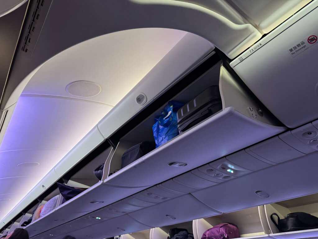 特に最後の方に並ぶと、座席上の荷物棚が埋まってしまい、自分の席から遠い場所に置かざるを得なくなることも。