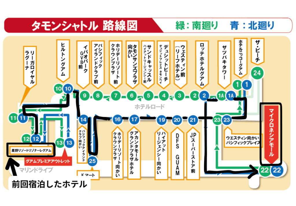 ただ、タモンエリアにある「Tギャラリア」やGPOと真反対に位置している「マイクロネシアモール」へ行くには、各駅停車のシャトルバスで行くか、ショッピングモールシャトルへ乗り換えをしなくてはならず、移動に時間がかかりすぎてしまいました。
