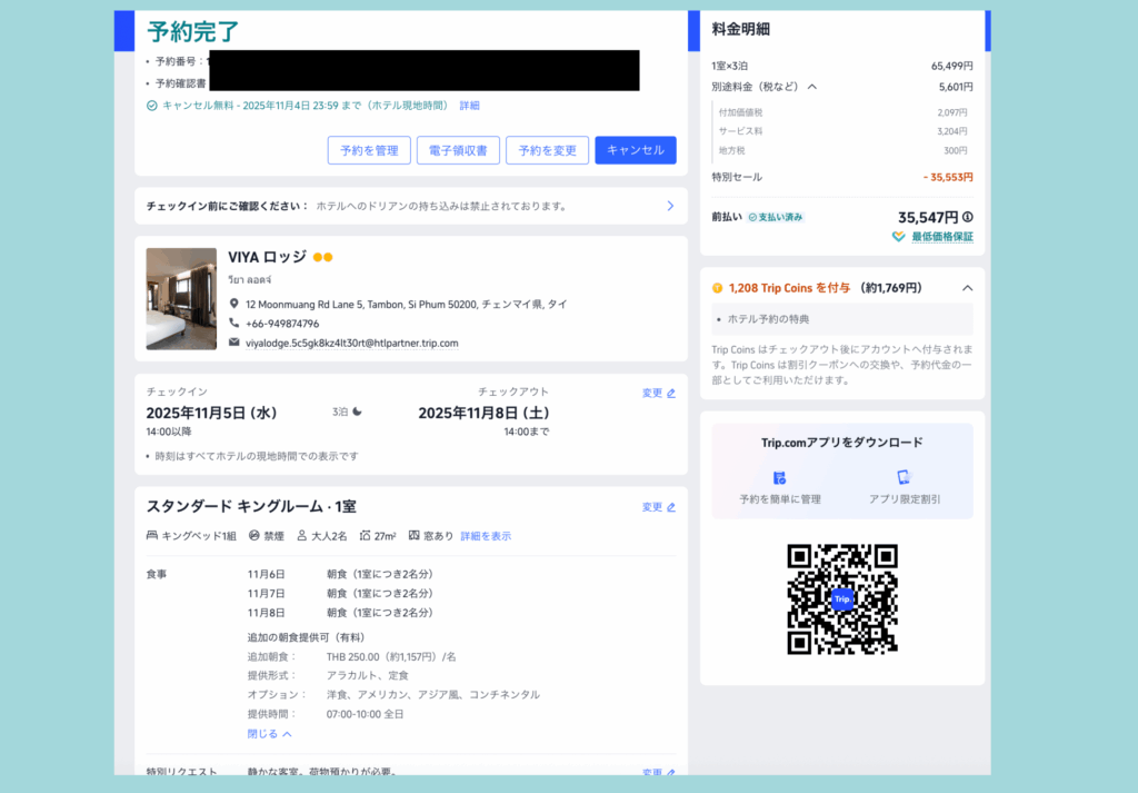 - 航空券:トリップドットコムで比較し、手荷物条件を確認して予約