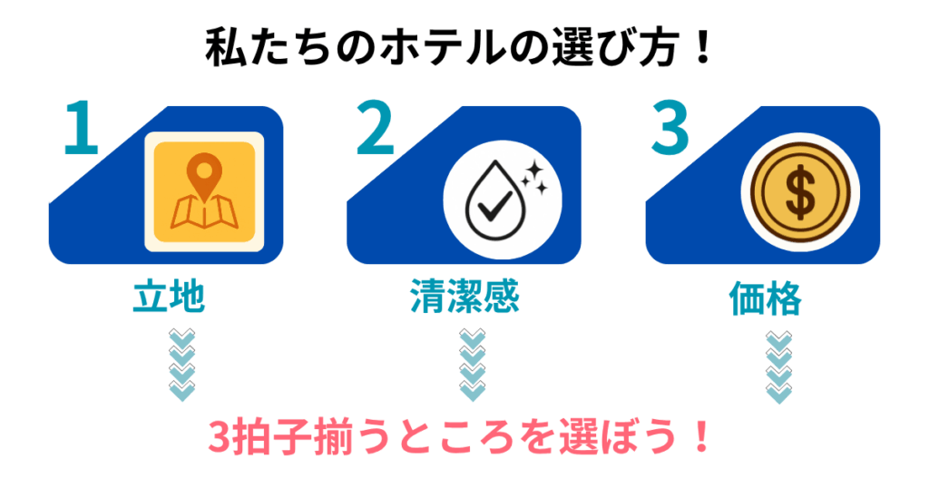 ホテルは【立地・清潔感・価格】のバランスが良いとこを!