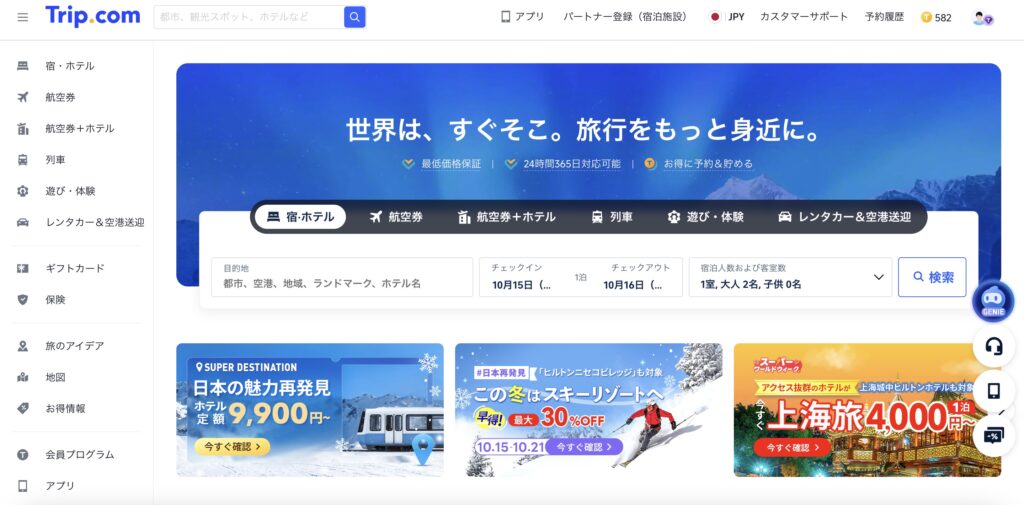 - 航空券&ホテル→トリップドットコム