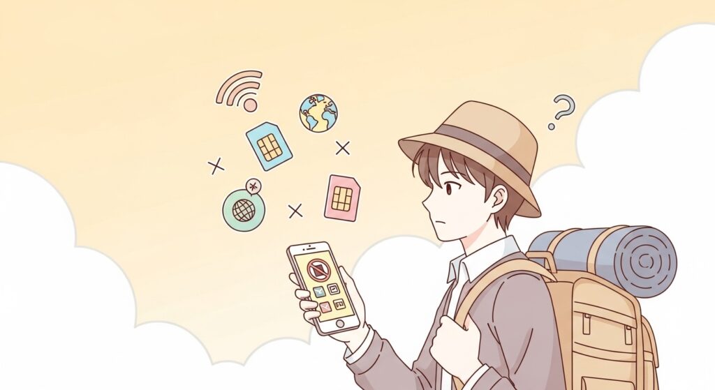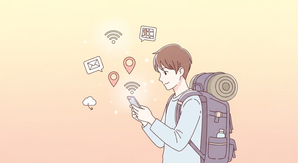そのため、Wi-Fiに繋いでも、現地SIMを挿しても、通知が届くだけで返信できない/地図が開かないといった不便な状態が発生します。